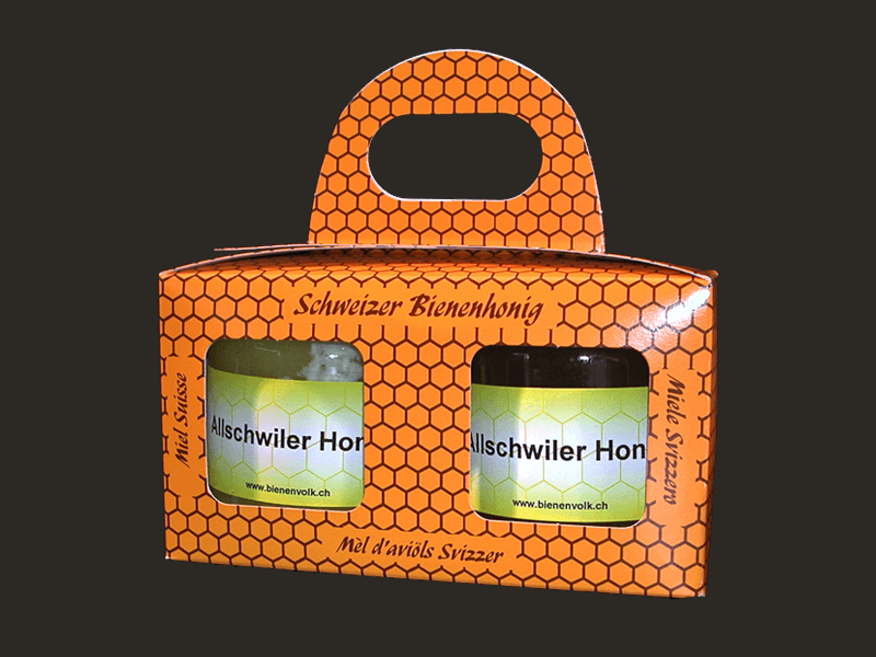 Geschenkbox mit Wabenmuster 2x500g Honig Menge