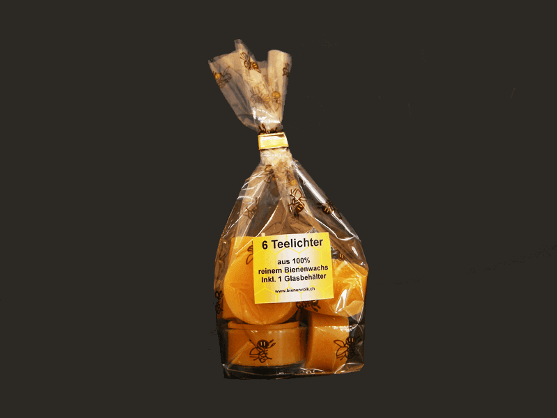 Set bestehend aus 6 Teelichtkerzen aus 100% reinem Bienenwachs